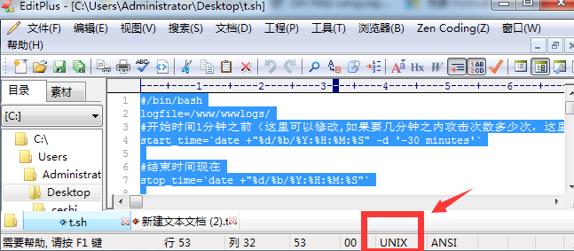 2、window编辑的脚本上传服务器后会出报错。务必保存为unix格式的。editplus可以在这里设置。